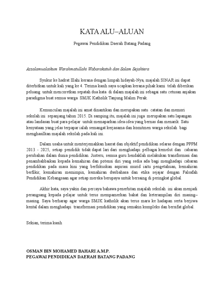 Kpm kata alu aluan kppm untuk majalah sekolah 2019. Teks ucapan ini dicipta dengan penuh ikhlas dan perasaan. Pegawai awam adalah diingatkan untuk.